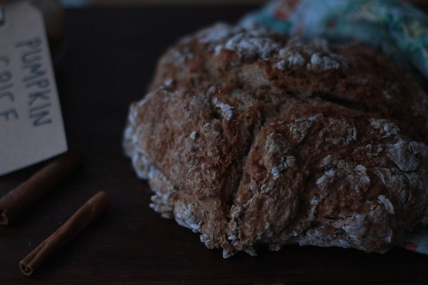 I have never ordered a pumpkin spice whatnot from a coffee chain, but I was craving a seasonal fix of spicy carbohydrates and thought a pumpkin spice soda bread would hit the spot. Soda bread is one of the easiest breads to make, which is why I make it all the time! It’s easy to add extra ingredients depending on the seasons or your craving. Or just say feck it and keep it simple – you’ll still turn out a wonderful loaf.
